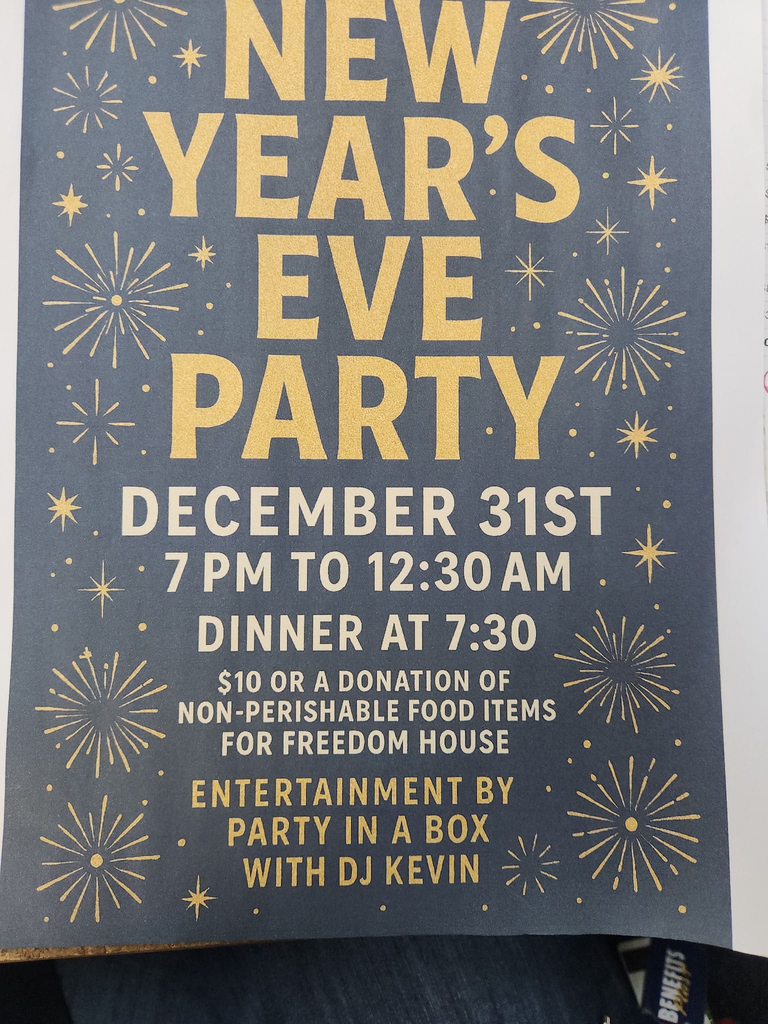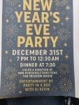 December 31st 7PM-12:30AM Dinner at 7:30PM