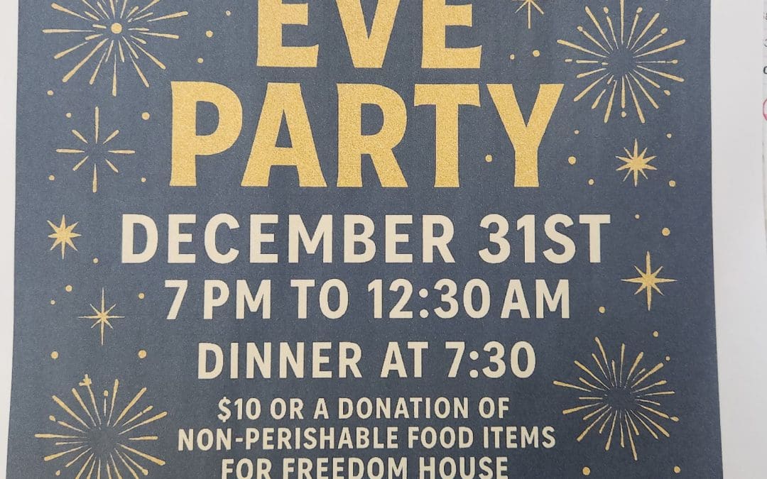 December 31st 7PM-12:30AM Dinner at 7:30PM